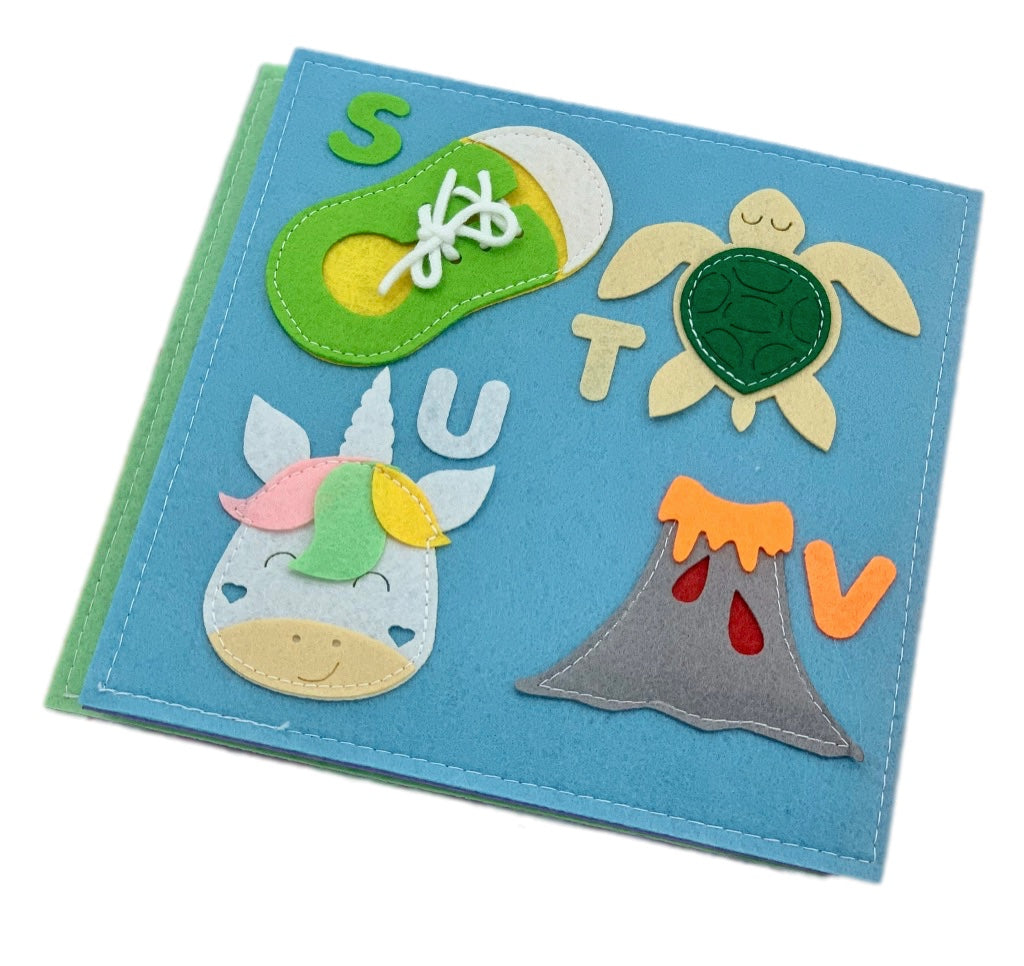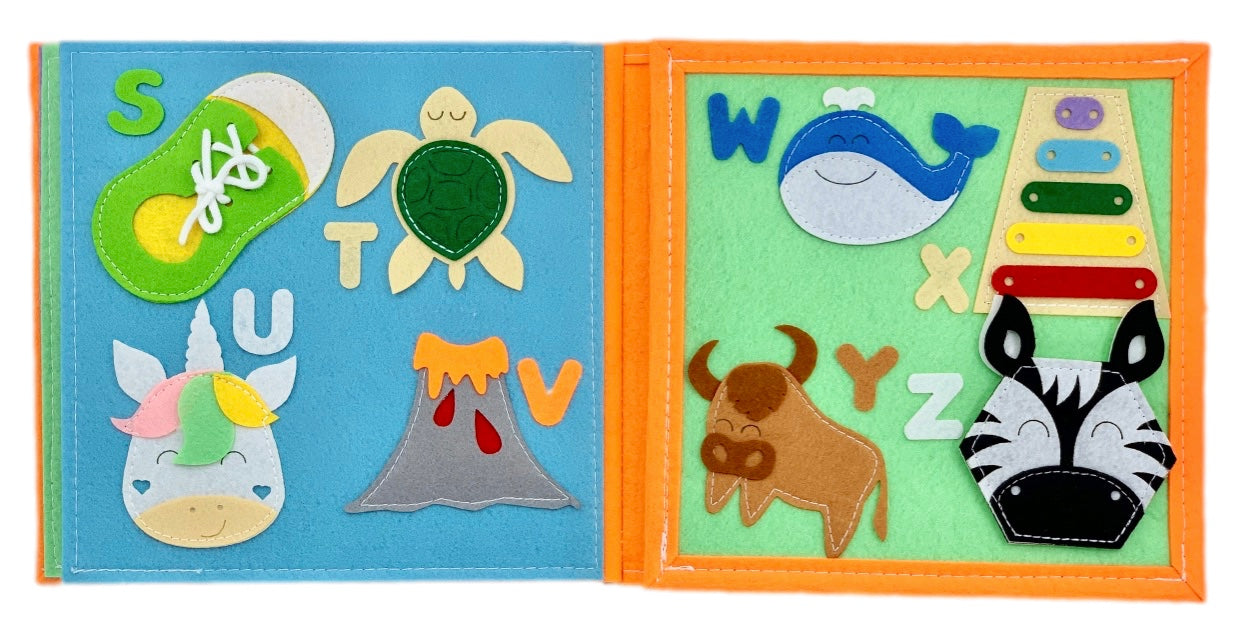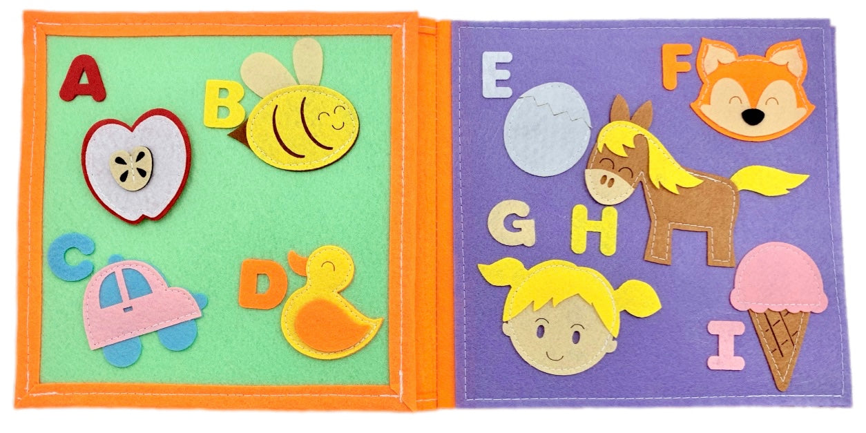 The Alphabet Book features 6 pages and are comprehensively crafted in felt textile material. This book is suitable for toddlers from 2-5 years old. This lovely book contains alphabet letters from A-Z and objects to go with each letter for kids to learn through playing or singing.