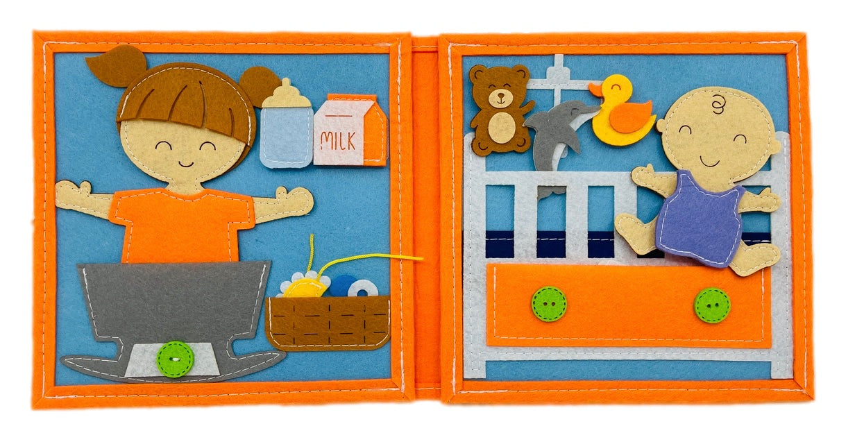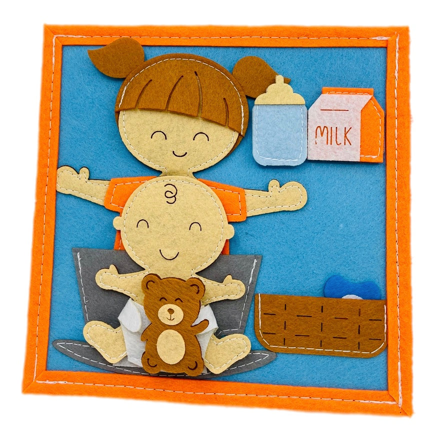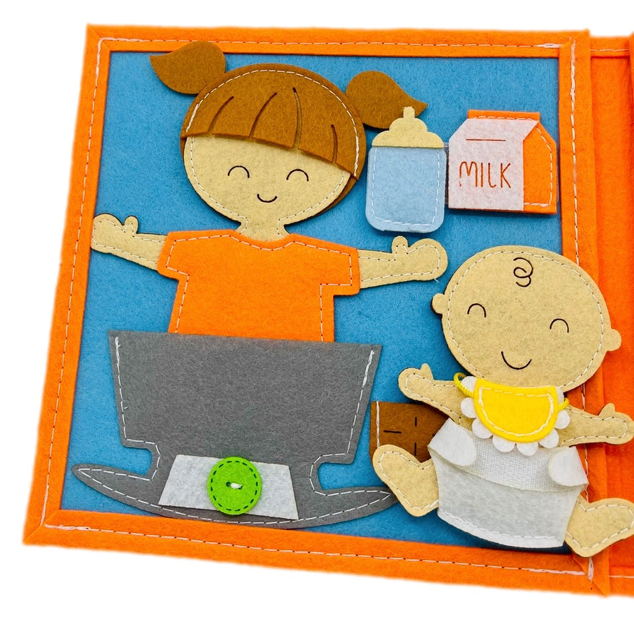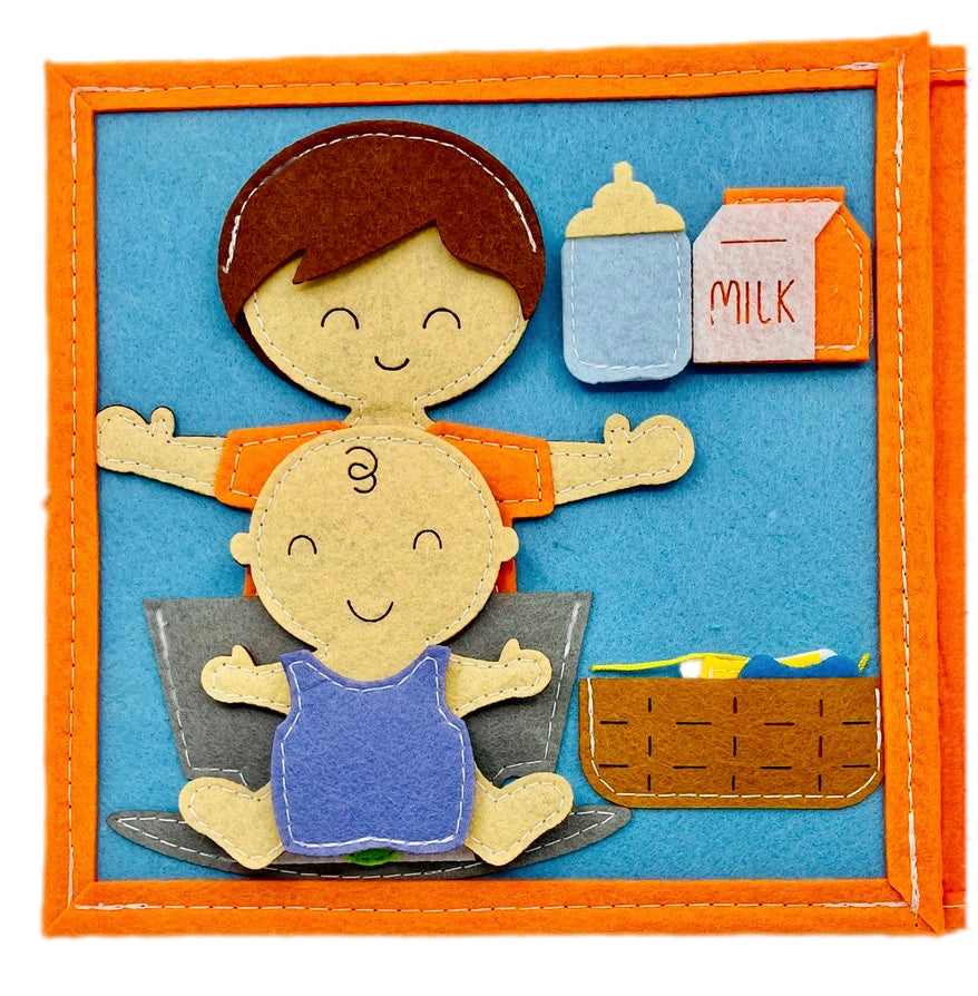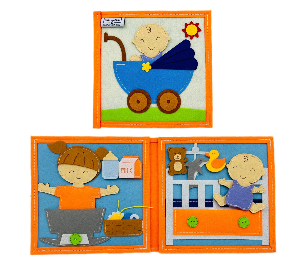 The Big Brother and Sister book feature a 20x20cm page and contain 3 pages, with comprehensively crafted in felt textile material. This lovely book let your young kids hours of fun and self-motivated skill development. How lovely to see kids mimic the ways parents take care of little baby.