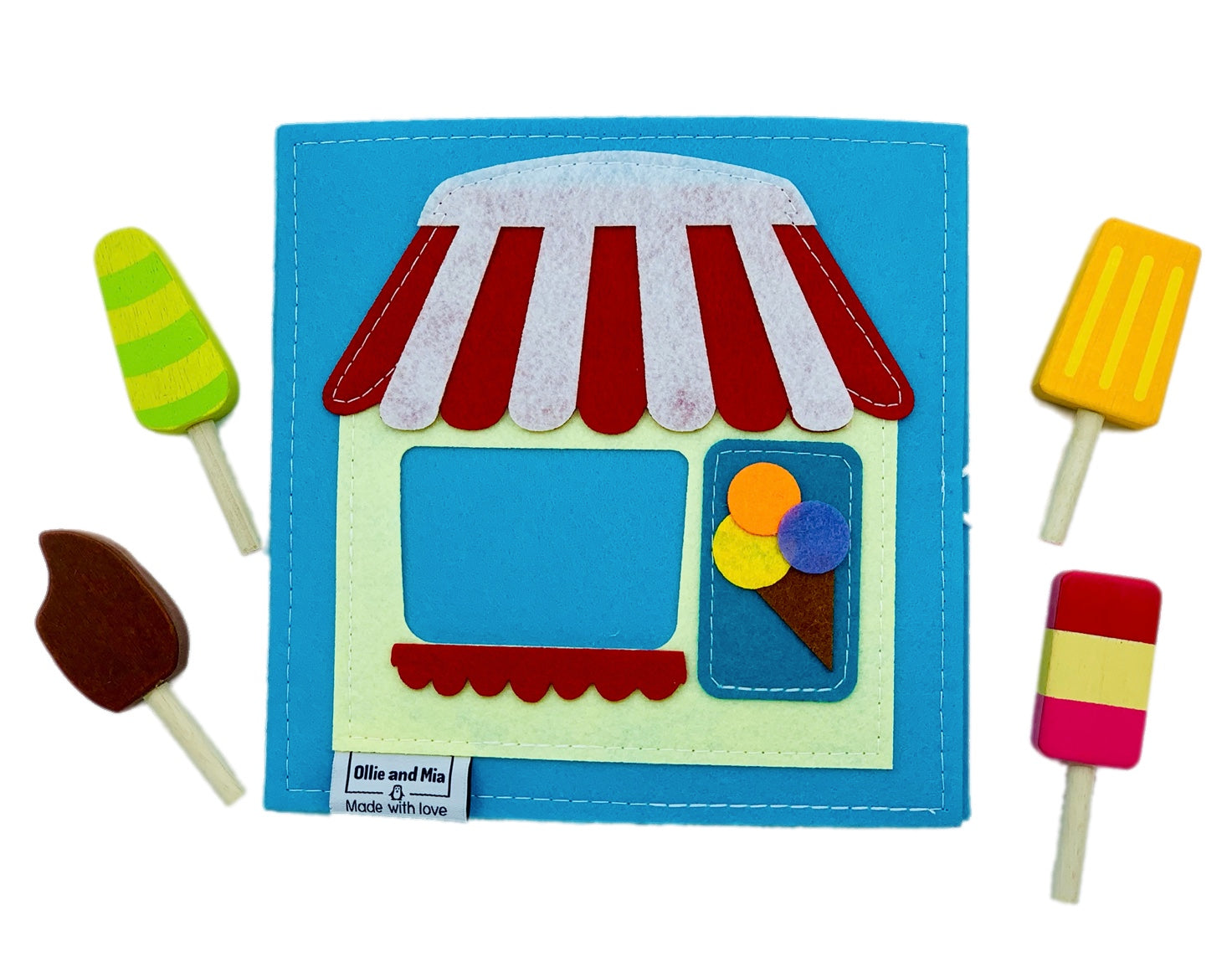 Handmade Felt Little Ice Cream Shop for pretend play or decoration.