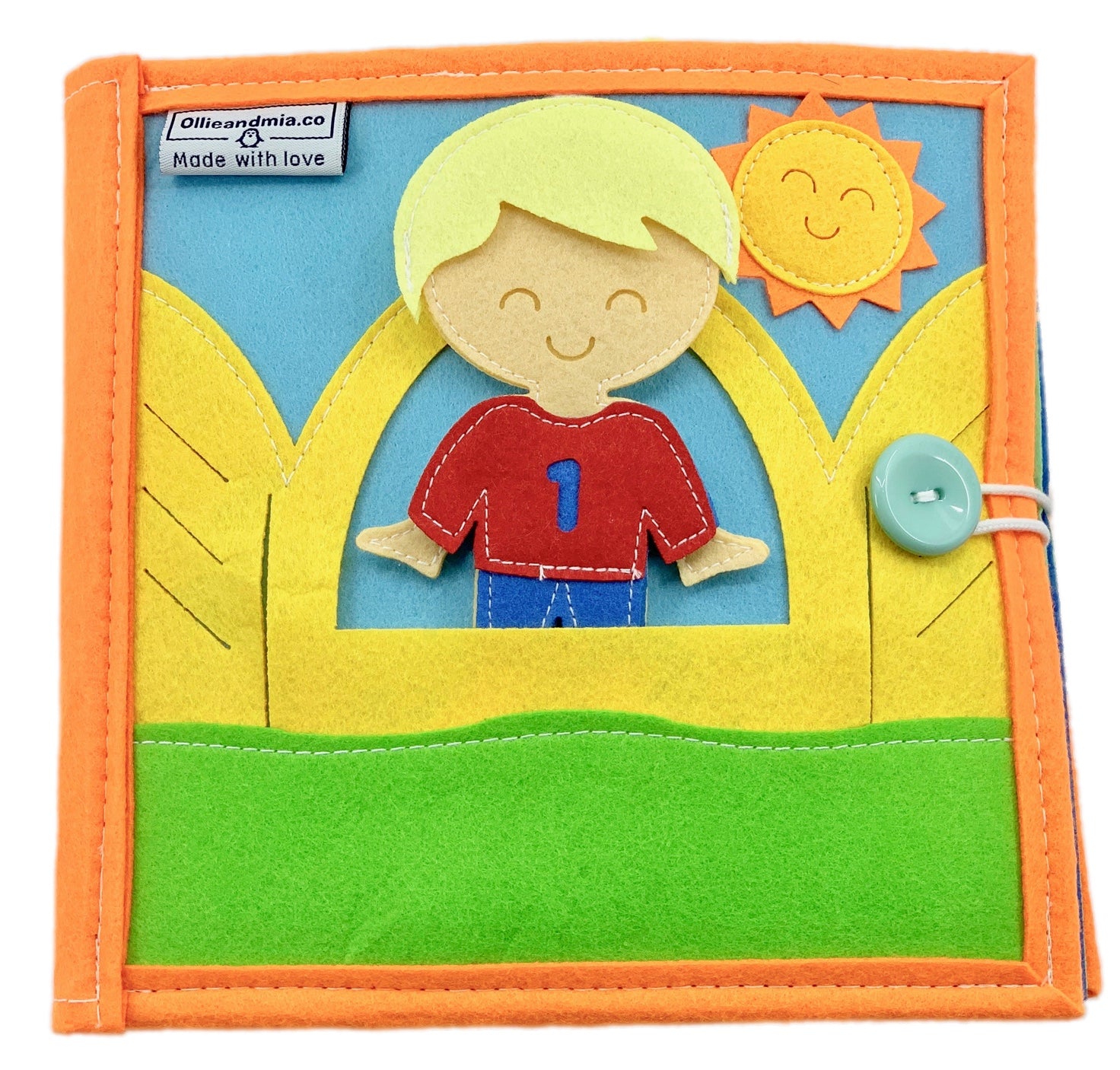 All Ollie & Mia’s Quiet Book is handmade with love. Made from cotton and felt ensuring all kids can play with it without much issues. Our books encourage pretend play and role playing where parents, grandparents and other children can play together.