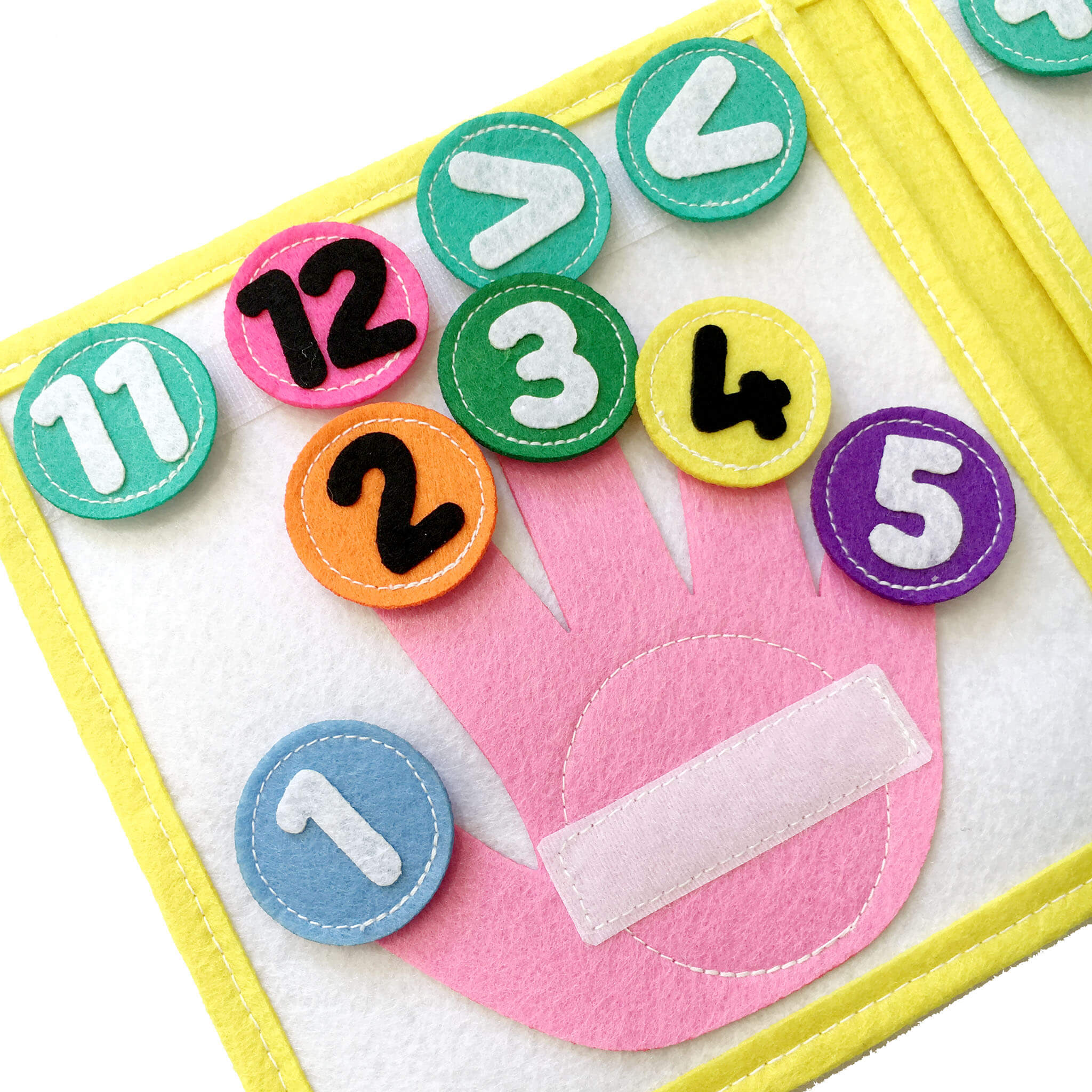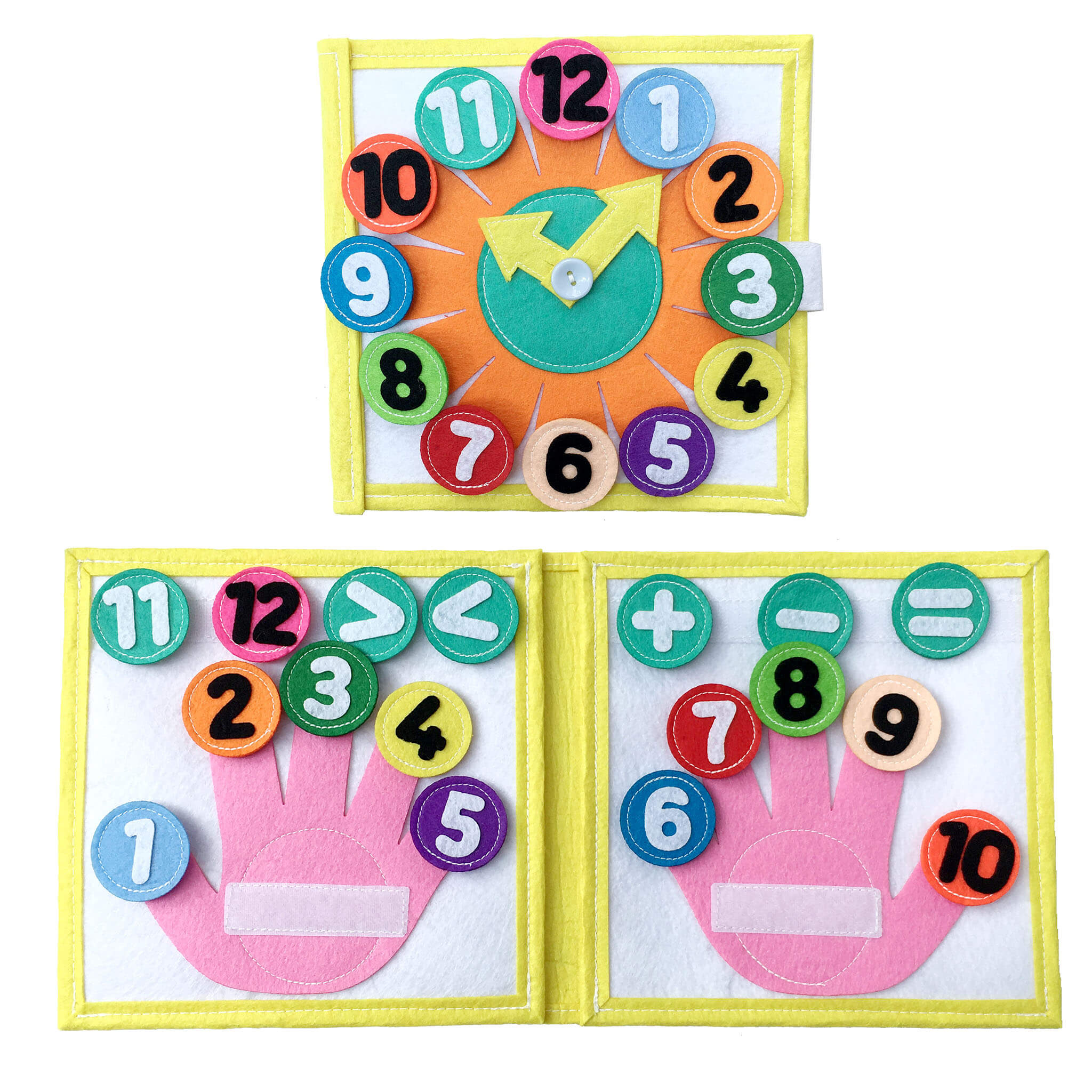 My Number Book features 2 pages of fun and learning, crafted in felt textile material. This book is suitable for kids from 3-6 years old. The Number book will help the kids to familiarise with numbers, maths and basic comparisons. This book also helps to learn how to read the time on a clock.