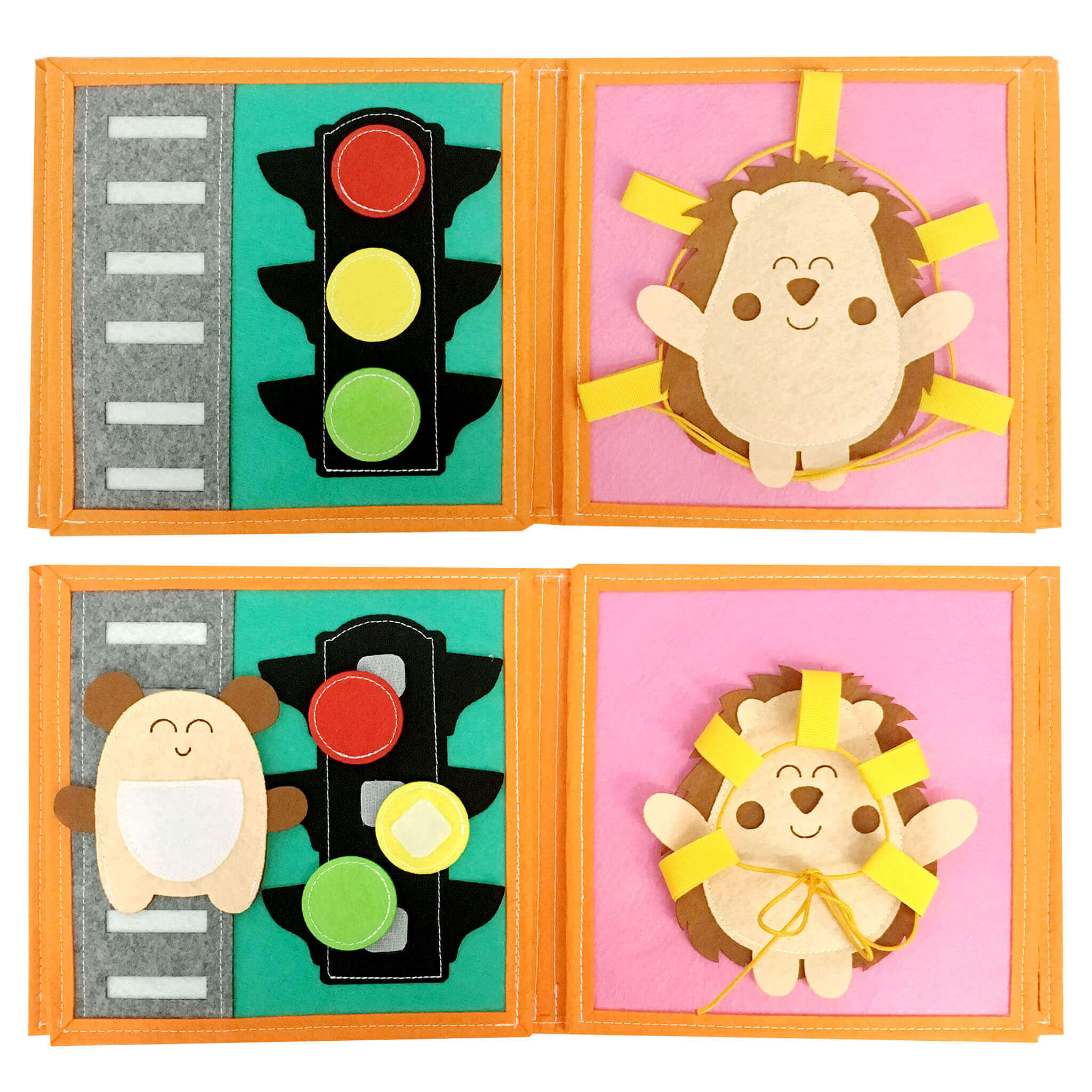 As every book is handmade, patterns of fabric used for background of pages in our quiet books may vary depending on the availability of fabric in stock. But be sure that the general colour scheme, colour of activity/sensory elements on pages, and book covers will remain the same as you see on pictures.