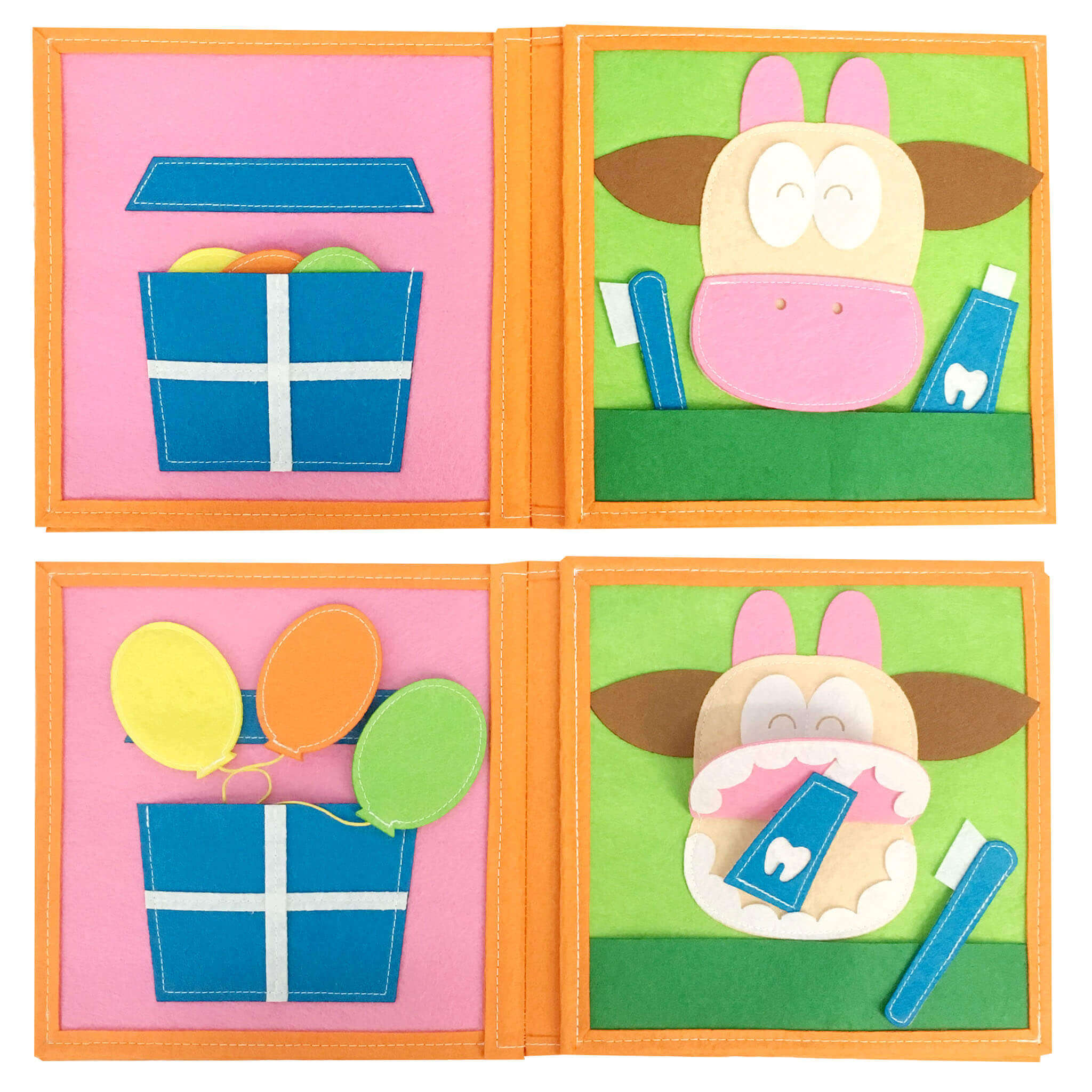 All Ollie & Mia’s Quiet Book is handmade with love. Made from cotton and felt ensuring all kids can play with it without much issues. Our books encourage pretend play and role playing where parents, grandparents and other children can play together.