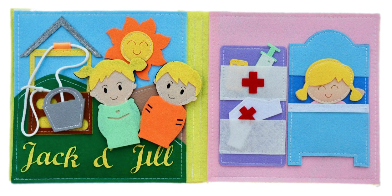 Sing Along Nursery Rhymes 2 feature a 21x21cm page and contain 6 pages, with comprehensively crafted in felt material. This lovely book contains 7 nursery songs such as: The Wheels On The Bus, Row Row Row your boat, One two three four five once I caught a fish alive, Jack & Jill, Miss Polly had a Dolly, Hickory Dickory Dock, I'm a little teapot... and many more activities associated with each song to develop kid’s fine motor skills.